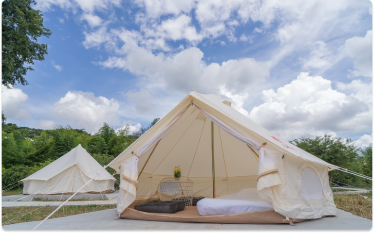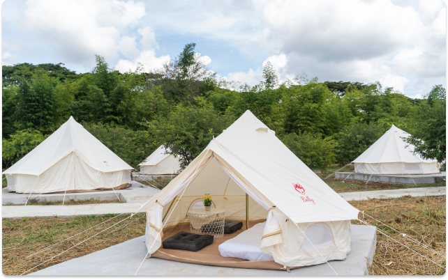 เต็นท์ของเราถูกออกแบบมาเพื่อให้คุณได้ใกล้ชิดกับธรรมชาติอย่างแท้จริง แต่ยังคงความสะดวกสบายครบครัน พร้อมด้วยพื้นที่กางเต็นท์ที่กว้างขวางและปลอดภัย